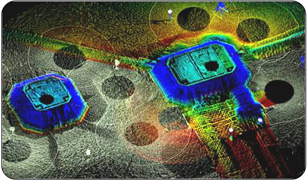 BlueView BV5000 水下三维全景成像声呐可生成水下地形、结构和目标的高分辨率图像。声呐采用紧凑型低重量设计,便于在三脚架或ROV上进行安装。BV 5000 最常用的作业方式是将声呐头、云台及三脚架一起投放于海底进行作业,以此方式进行作业时,声呐头不会受到船体本身姿态变化的影响,并且不受船只大小的影响,甚至可以用橡皮艇对设备进行投放,可作业于大型船只无法靠近的狭窄区域。当需要测量离海底有一定高度的目标物时,也可将采用船舷安装方式进行作业。BV5000 操作极为简便,只需设置扫测速度和角度,再点击开始按钮,三维扫描声呐就会生成水下景象的三维点云。扫描声呐头和集成的云台可以生成扇区扫描和球面扫描数据。在水下,甚至在低照度或者零可见度的水下环境,也可以获得陆地三维激光扫描一样的图像。而且,这种图像可以与传统的激光扫描图像无缝拼接。BV5000-1350 具有1.35MHz的超高工作频率,最大工作量程为30米,最佳工作量程在20米左右,非常适合详细水下结构检查,并提供给工程师具有完全旋转功能的3D图像和关键测量所需的原样状态数据监控。